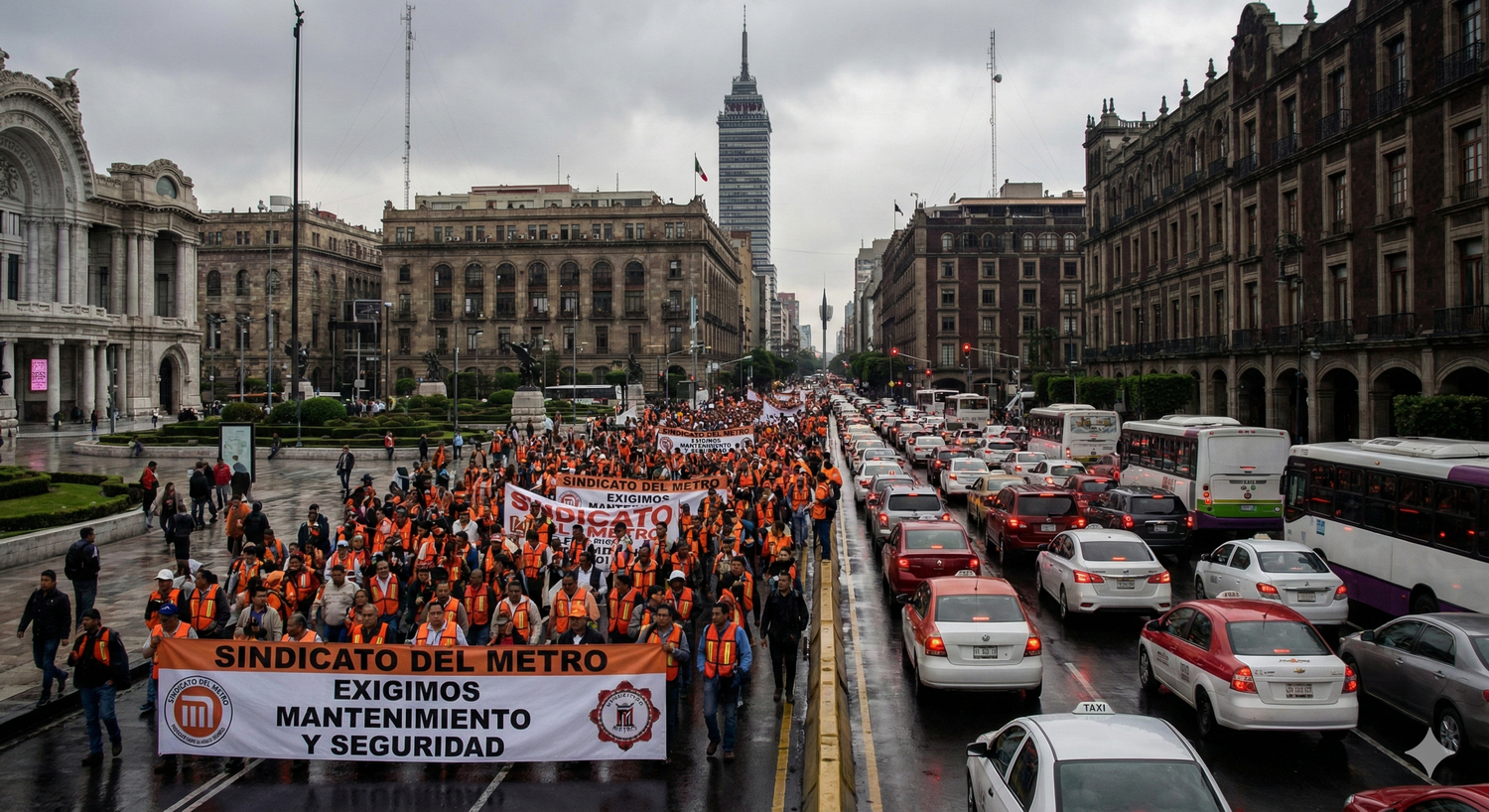 Trabajadores del Metro marchan hoy al Zócalo exigiendo presupuesto para mantenimiento; se esperan retrasos y caos vial desde las 15:30 horas.