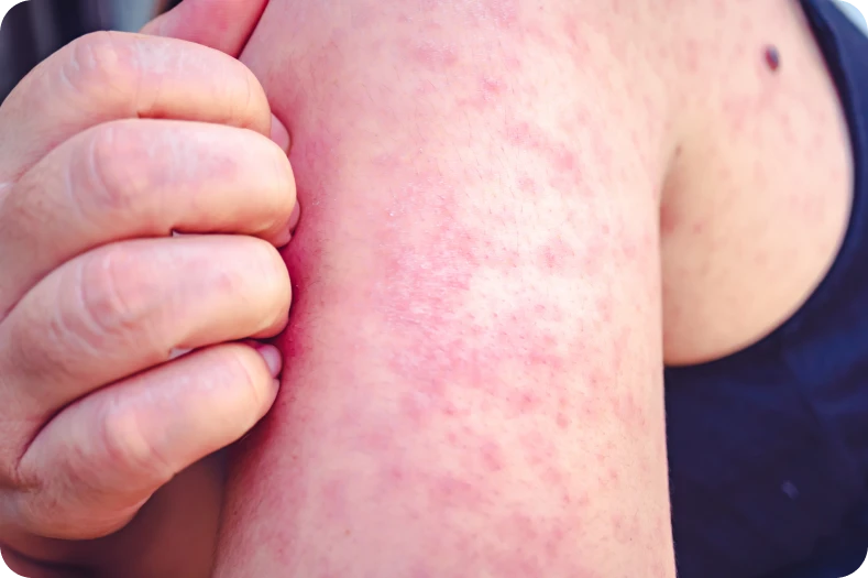 • Ronchas que comienzan en la cabeza y se extienden por el cuerpo